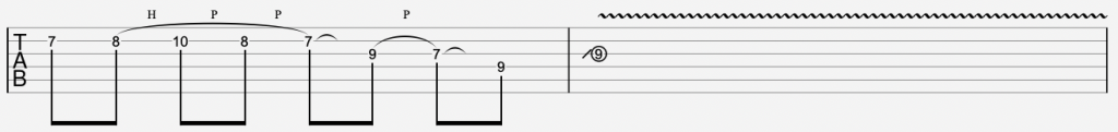 - Notice that final note where you slide to the 9th fret; this note is picked (you can slide from the 7th fret).