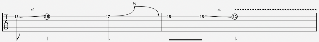 - Start by sliding from the 13th to the 15th fret.