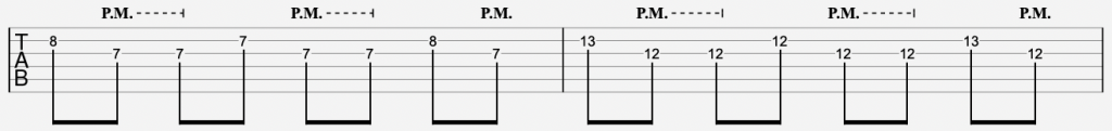 - Notice how this is done in two places on the fretboard in the tabs.